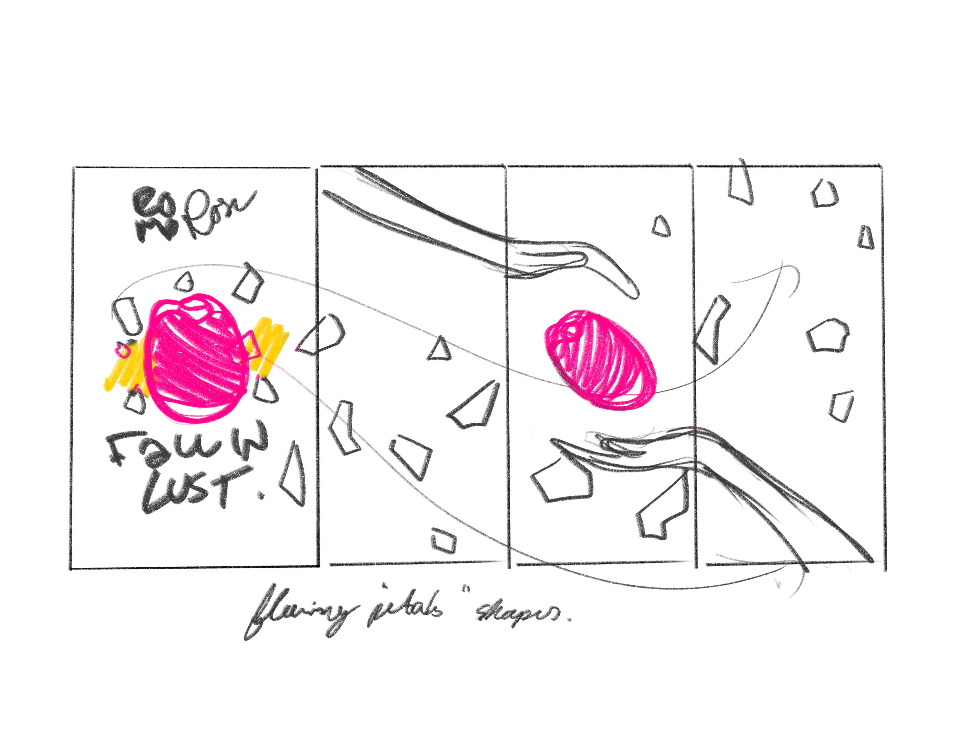 To tie the sections together, I used ROMP’s signature shapes featured on the product’s packaging to create movement by mimicking flower petals drifting from the product image to the rest of the graphic.
